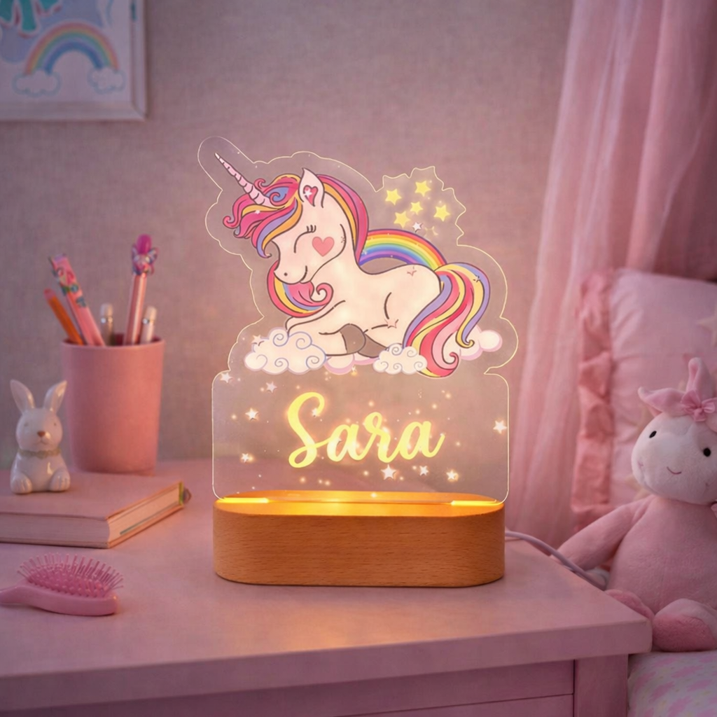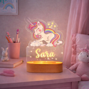 Transforma qualquer quarto de bebé ou criança num espaço acolhedor com uma luz personalizada que não passa despercebida. Design moderno, iluminação suave e nome gravado.