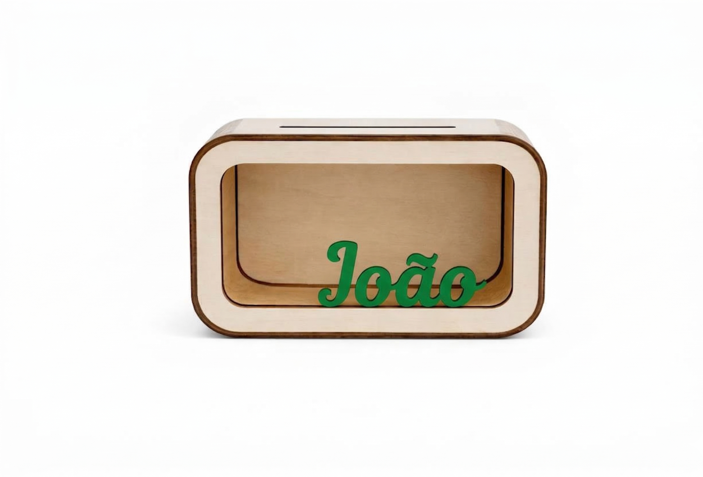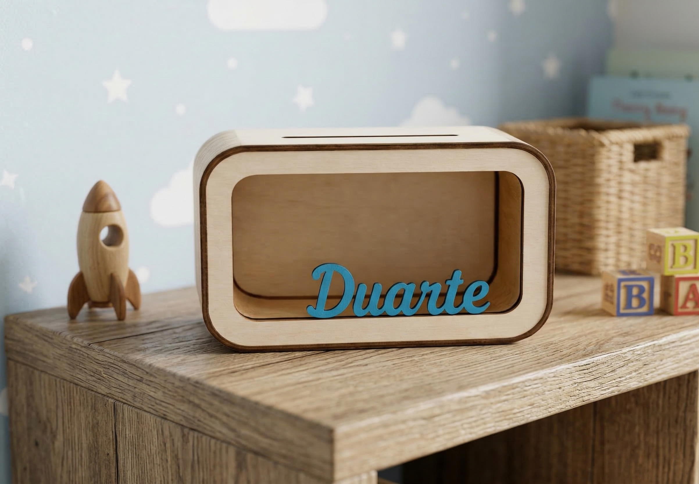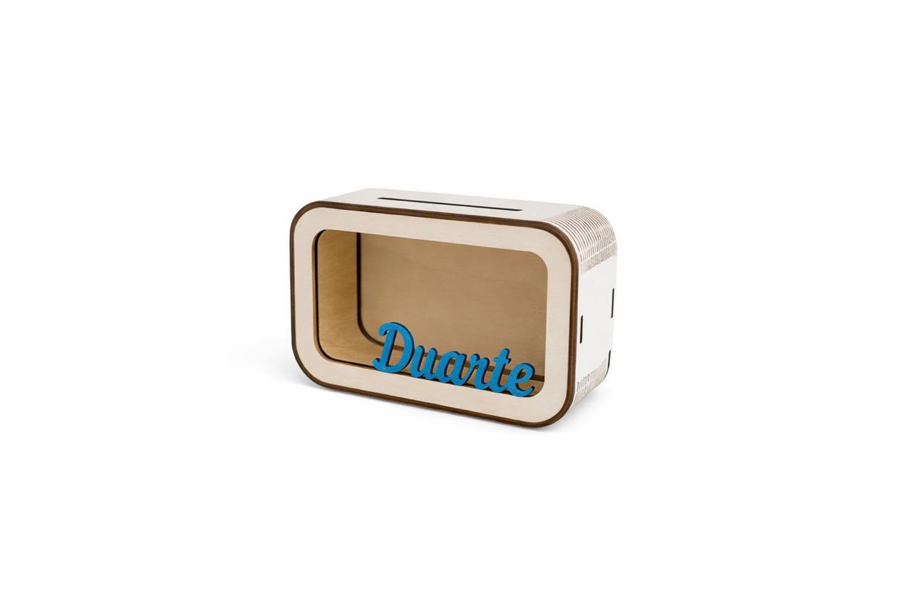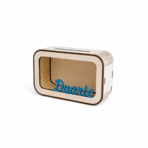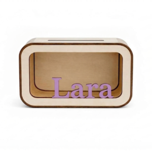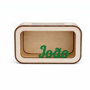 Um mealheiro original personalizado com o nome da criança, perfeito para incentivar os mais pequenos a aprender o valor de poupar de forma divertida.