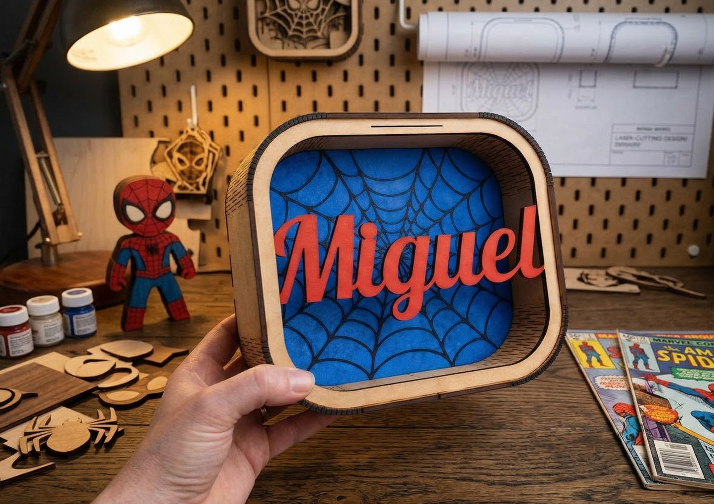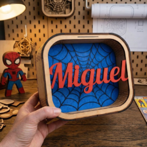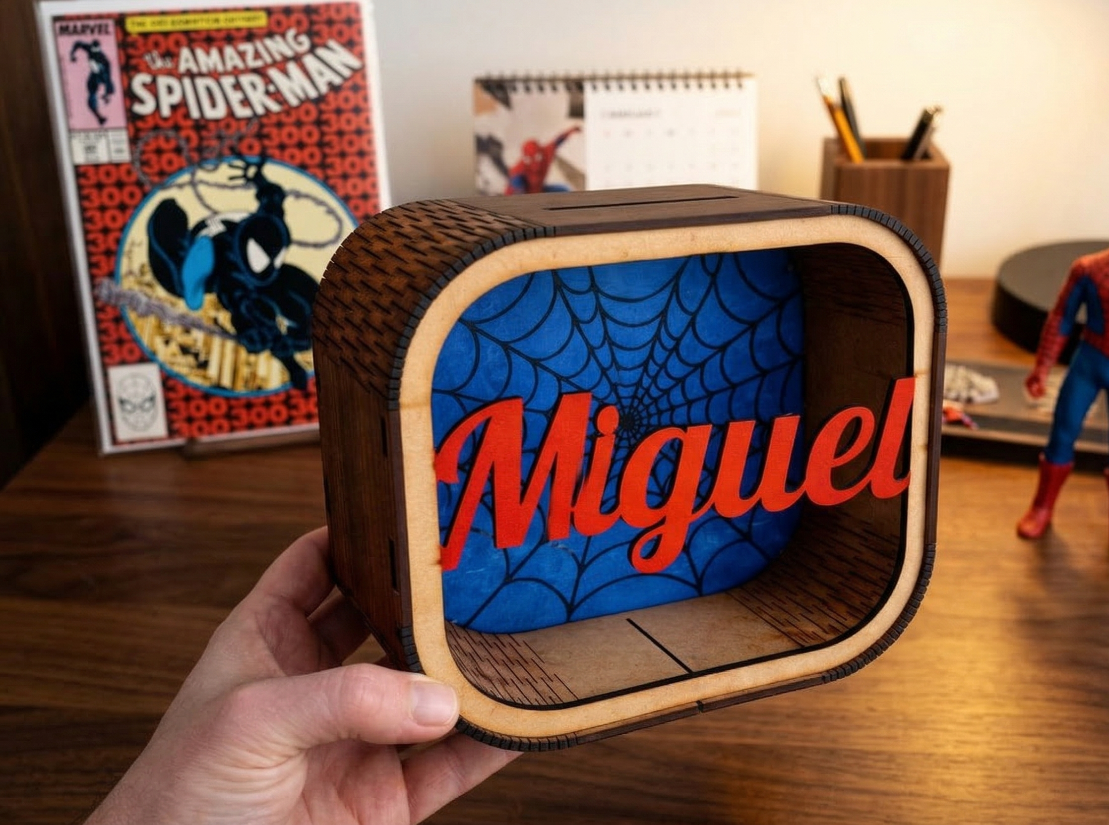 🪵 Produzido em madeira com design do Super-Herói Aranha