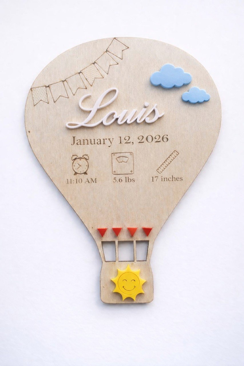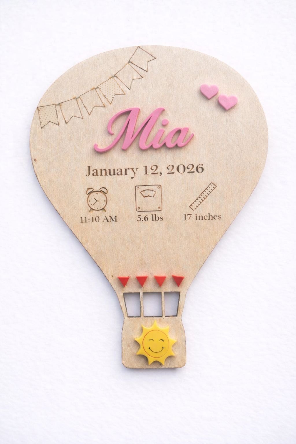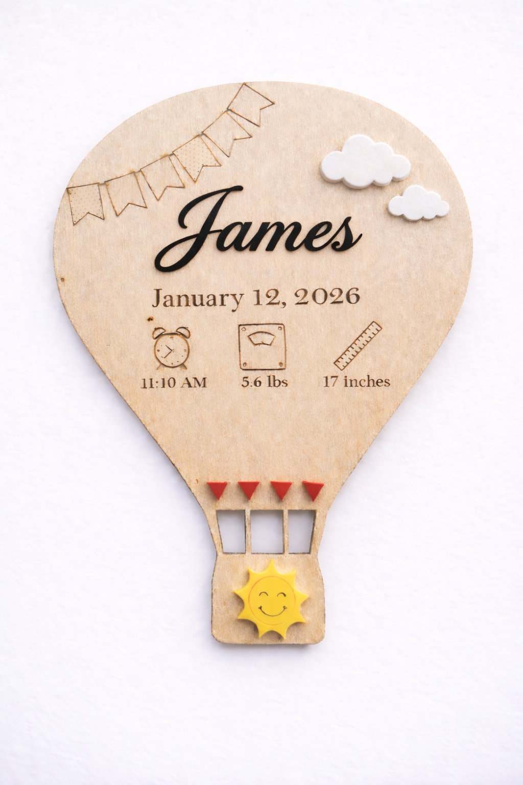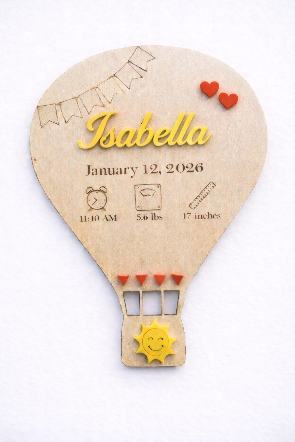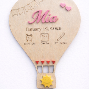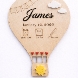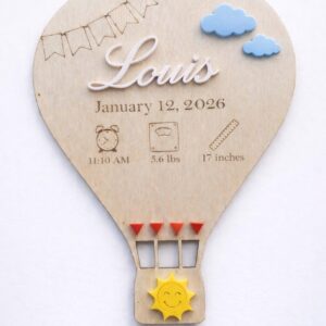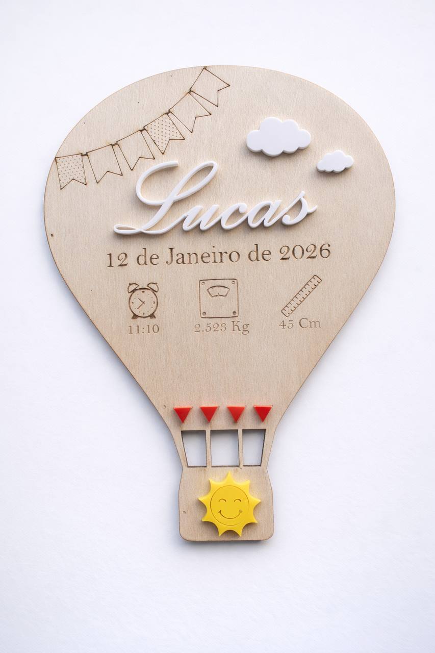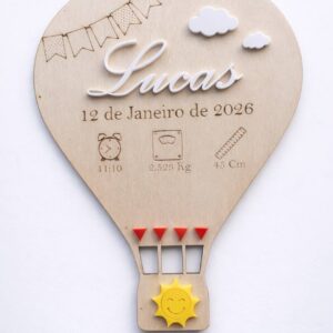 Conteúdo: Placa de madeira de balão de ar quente, gancho traseiro