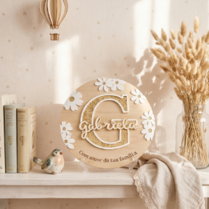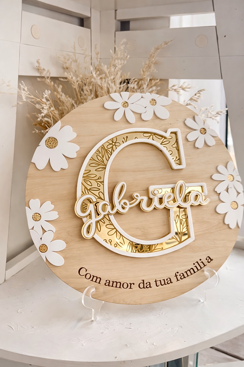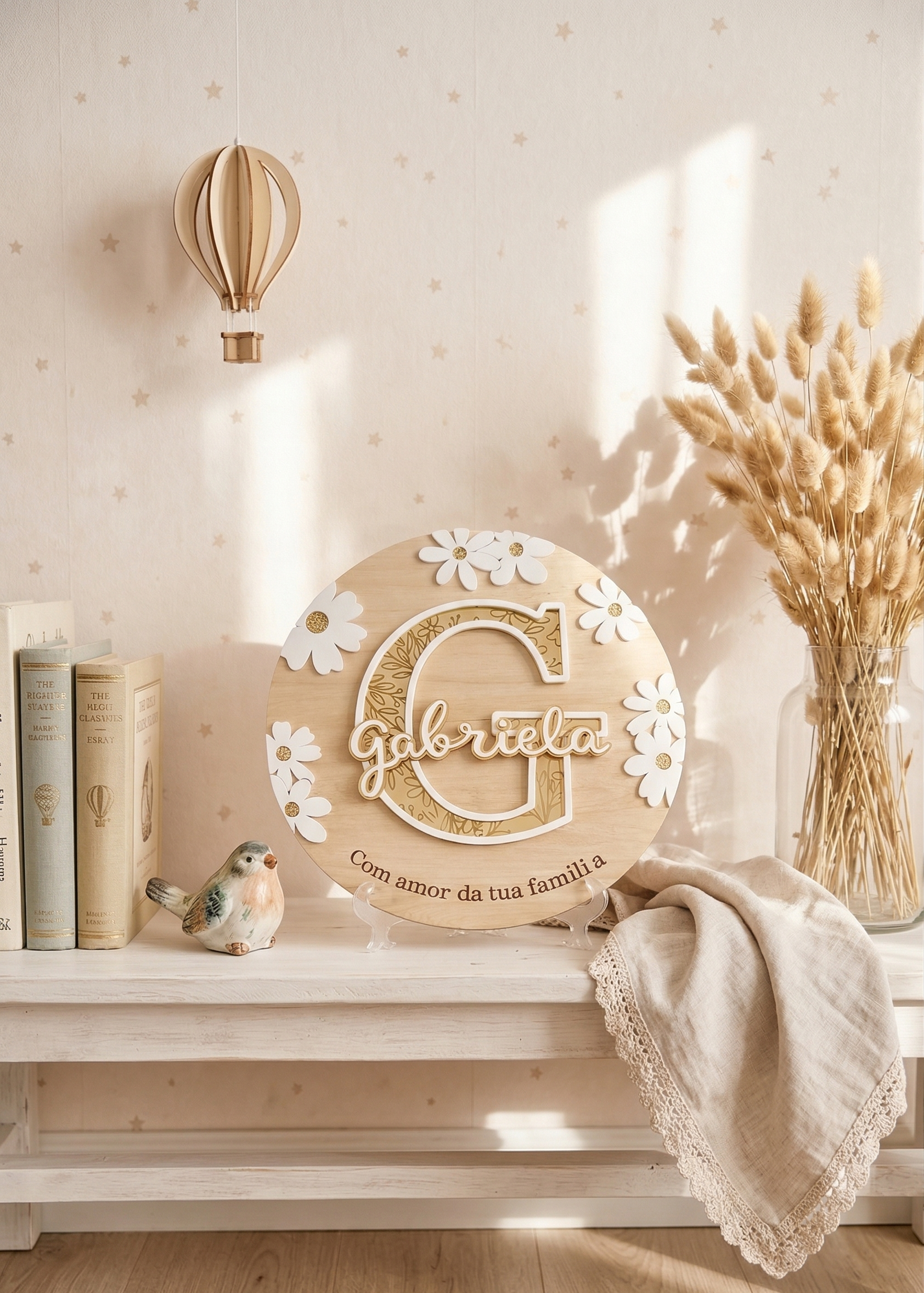 Conteúdo: Placa de madeira redonda, gancho traseiro