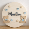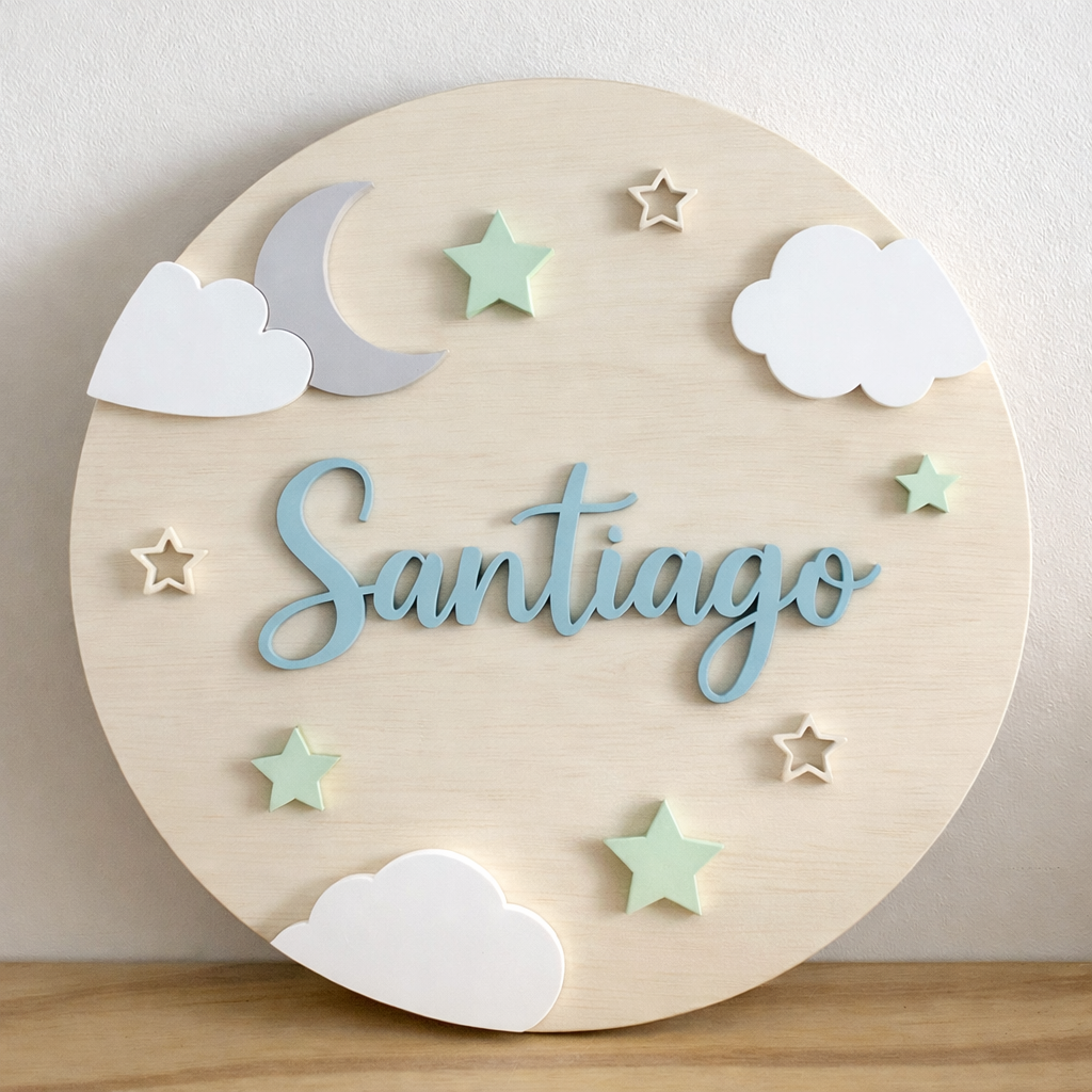 Placa de maternidade em adeira com apliques em madeira.