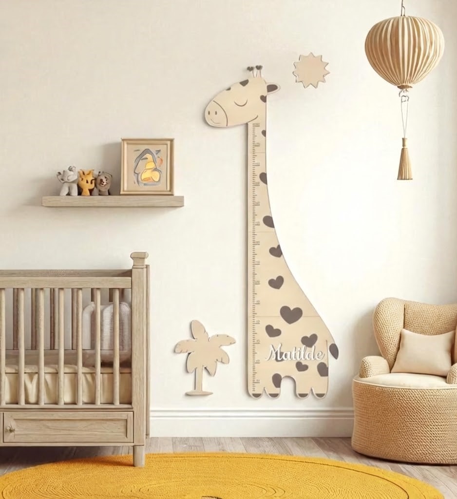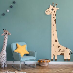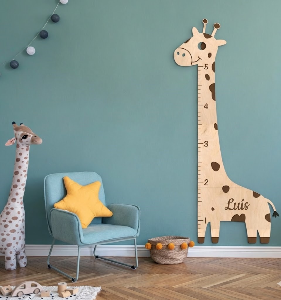 Régua de crescimento em forma de girafa, personalizada com o nome da criança.