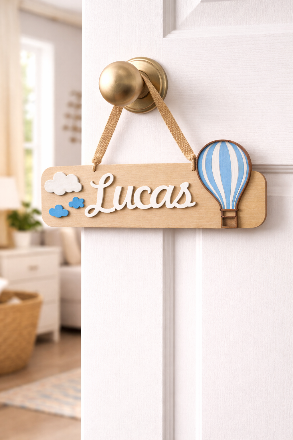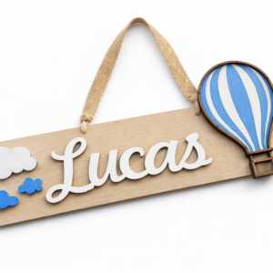Transforma a porta do quarto numa peça única. Esta placa personalizada com acabamento artesanal, criando um detalhe decorativo que se destaca.